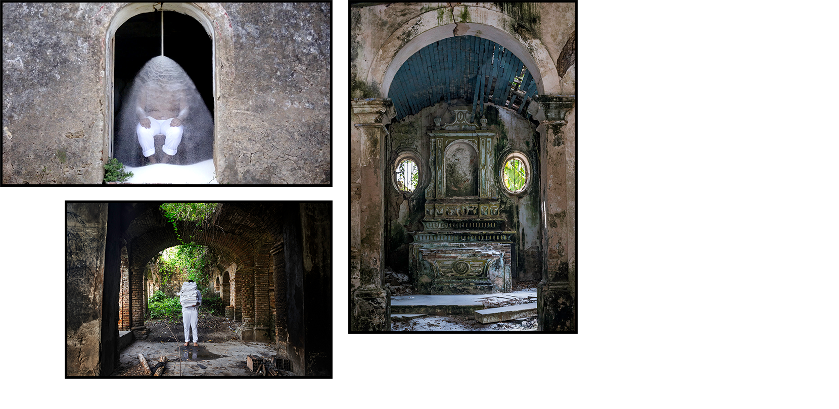 O artista visual Tiago Sant’ana vem visitando ruínas de engenhos de açúcar no Recôncavo Baiano desde 2017. Suas ações concentram-se nas memórias de ancestralidades negras, transformando a energia de violência e extermínio destes espaços em pulsão de vida.